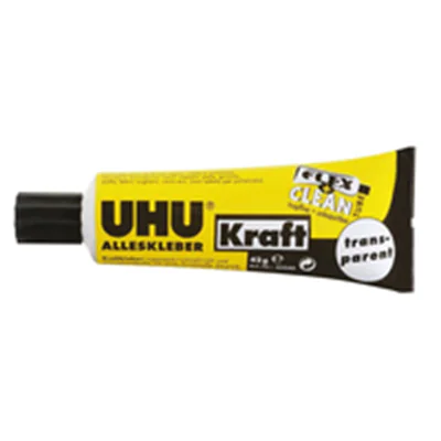 UHU® Alleskleber Kraft transparent FLEXTube für sichtbare Klebefugen und transparente Materialien in der speziellen, weichen und unkaputtbaren Kunststofftube für sauberes, tropffreies, handliches Kleben. Klebt einfach alles zuverlässig und mit außergewöhnlicher Klebekraft - sowohl im Einseiten- (Nasskleben) wie auch im Zweiseiten-Klebeverfahren (Kontaktkleben). Der Klebefilm bleibt elastisch und gleicht so Materialspannungen aus. Der Alleskleber ist transparent ist schnell und superstark, daher ideal beim Hand- und Heimwerken, beim Reparieren, beim Konstruieren, beim Basteln, im Modellbau usw.. Lässt sich auch unter Wasser verarbeiten (z.B.Teichfolien aus Weich-PVC).
